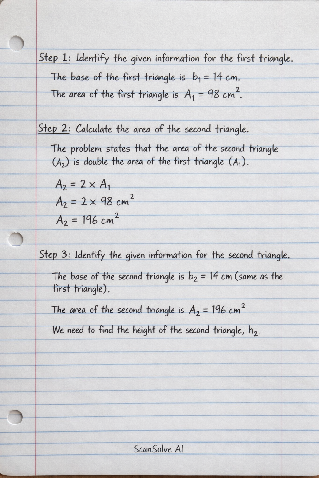 The base of the second triangle is b2=14 cm (same as the first triangle).
