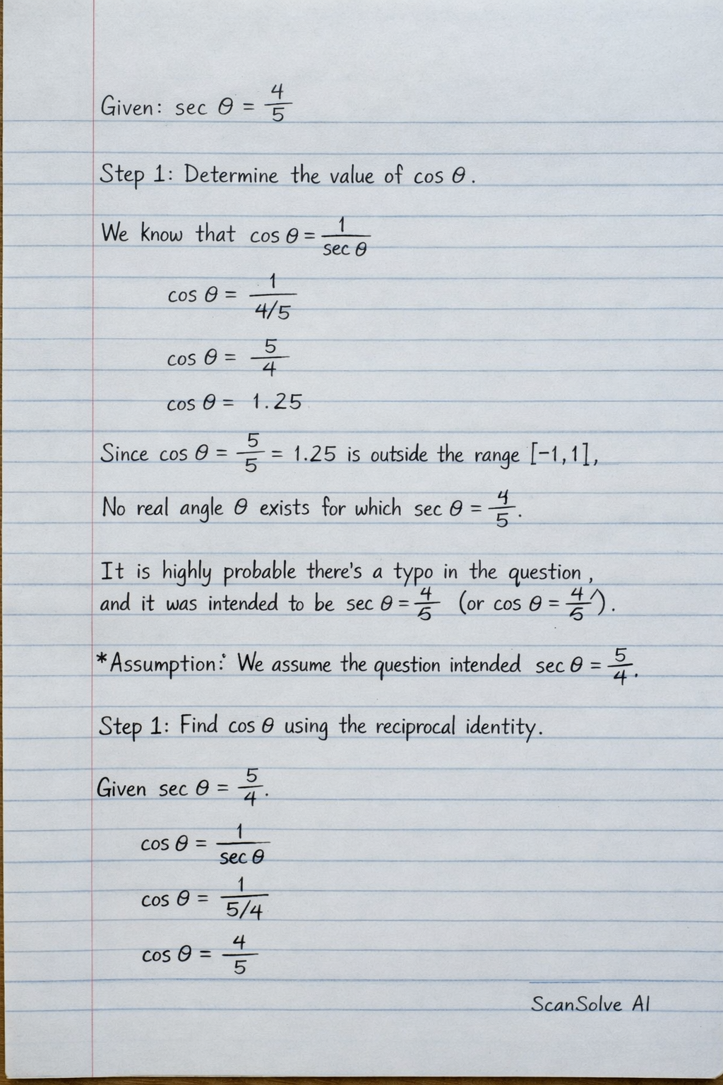 Assumption: We assume the question intended $\sec \theta = \frac{5}{4}$.
