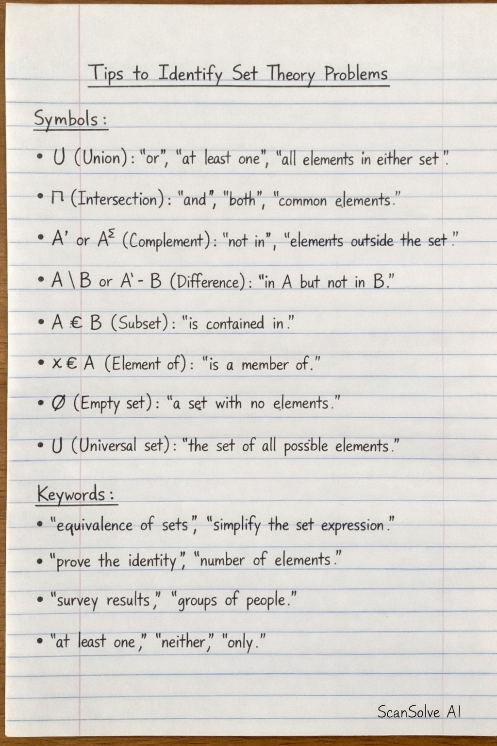 Tips to Identify Set Theory Problems