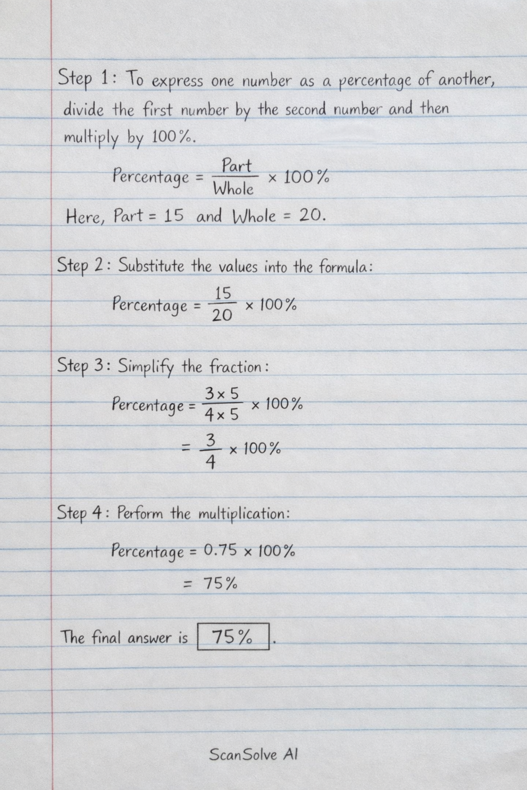 Step 1: To express one number as a percentage of another, divide the first number by the second number and then multiply by 100%.
