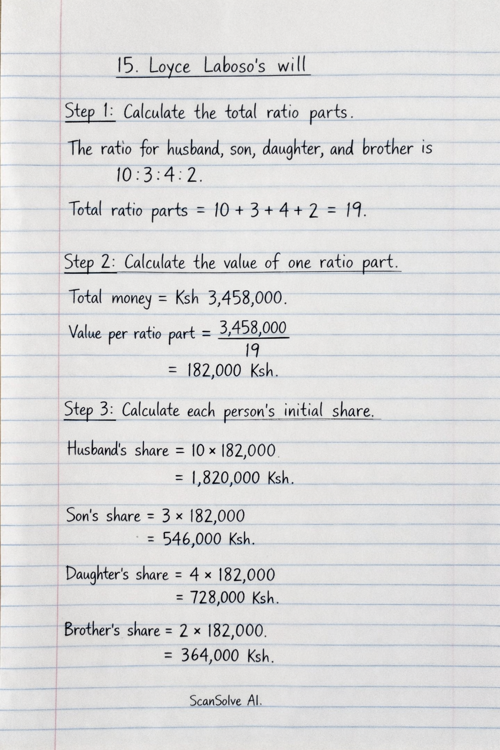 Calculate the total ratio parts.