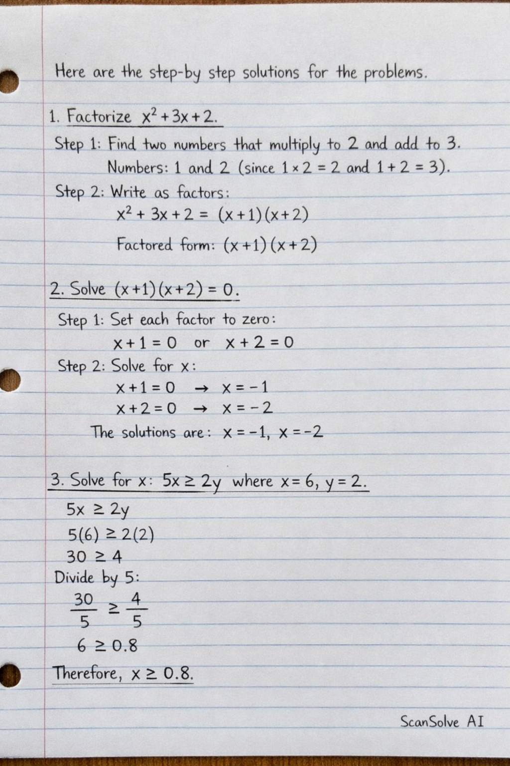 1. Factorize x2+3x+2