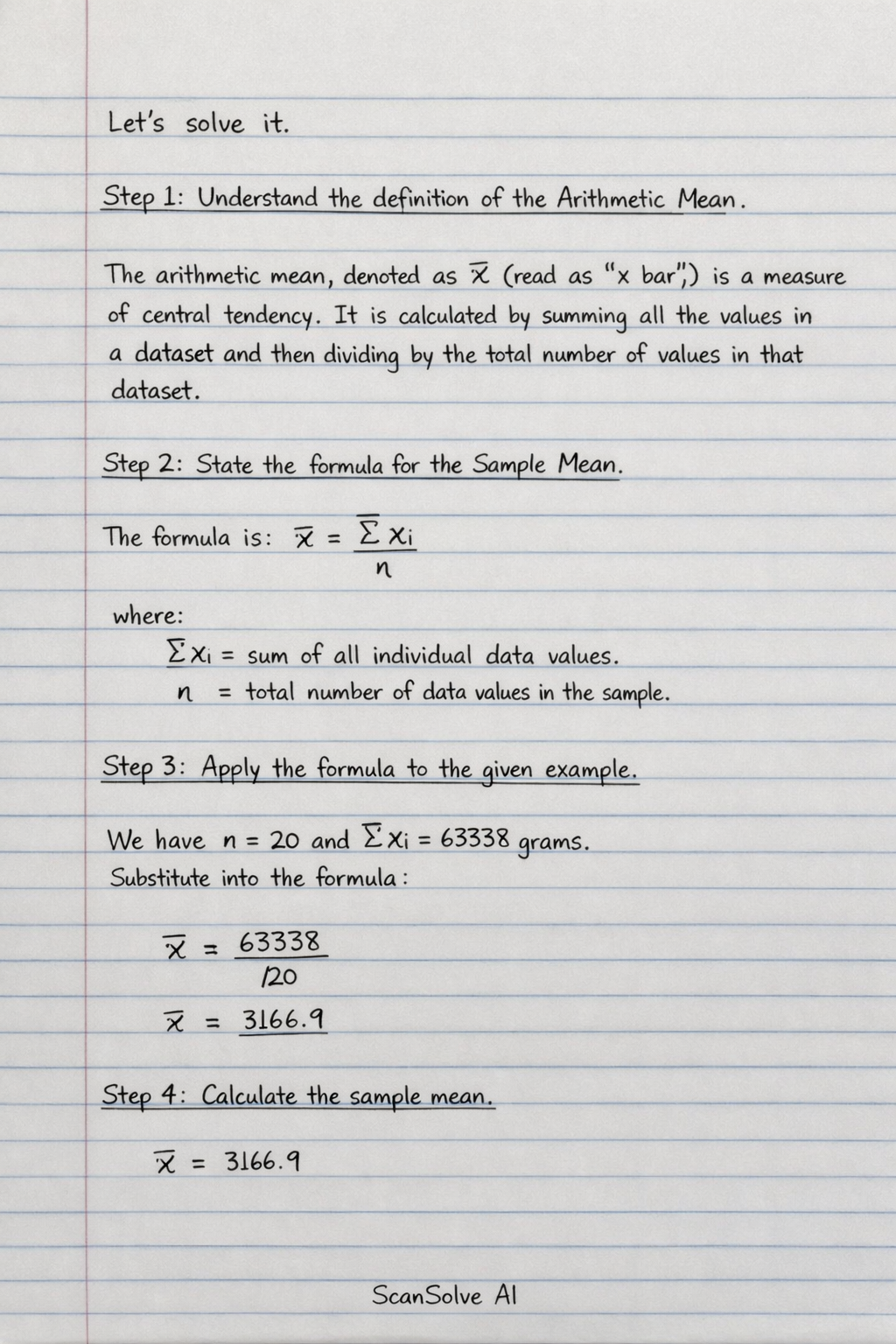 Step 4: Calculate the sample mean.