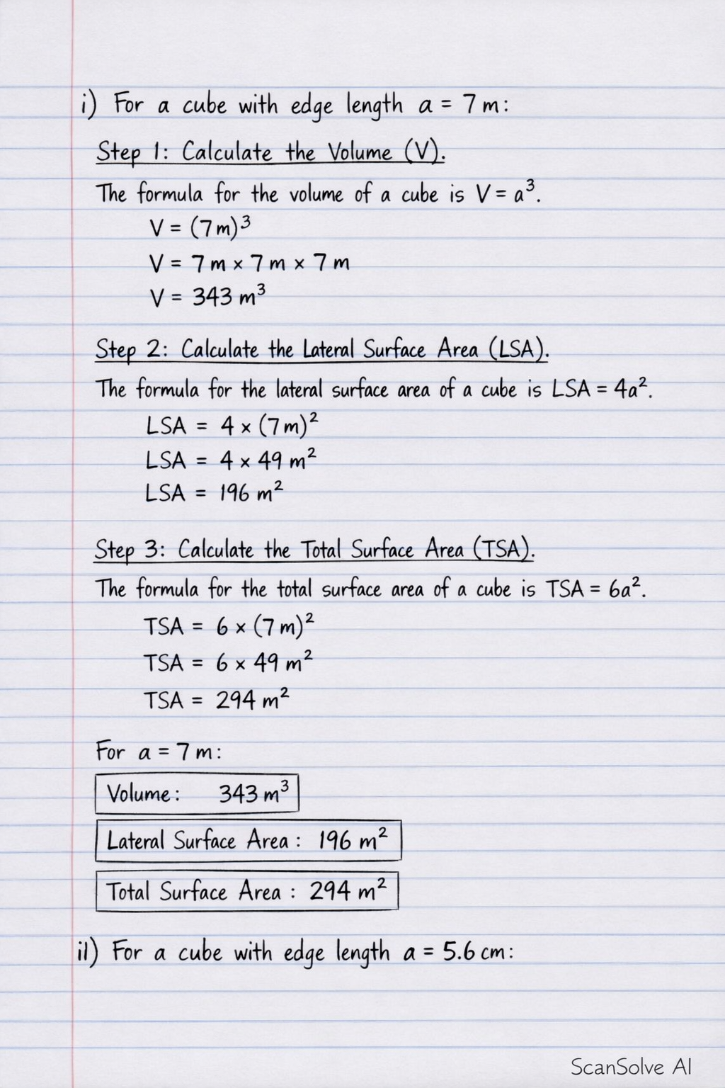 The formula for the lateral surface area of a cube is LSA=4a2.