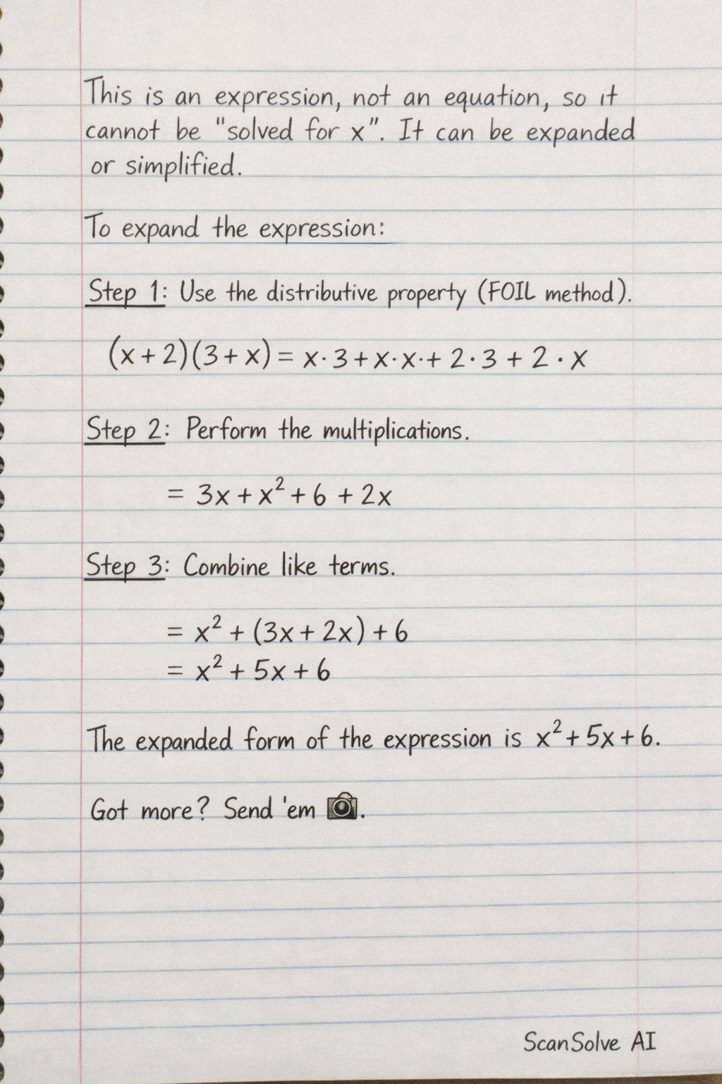 The expanded form of the expression is x2+5x+6.