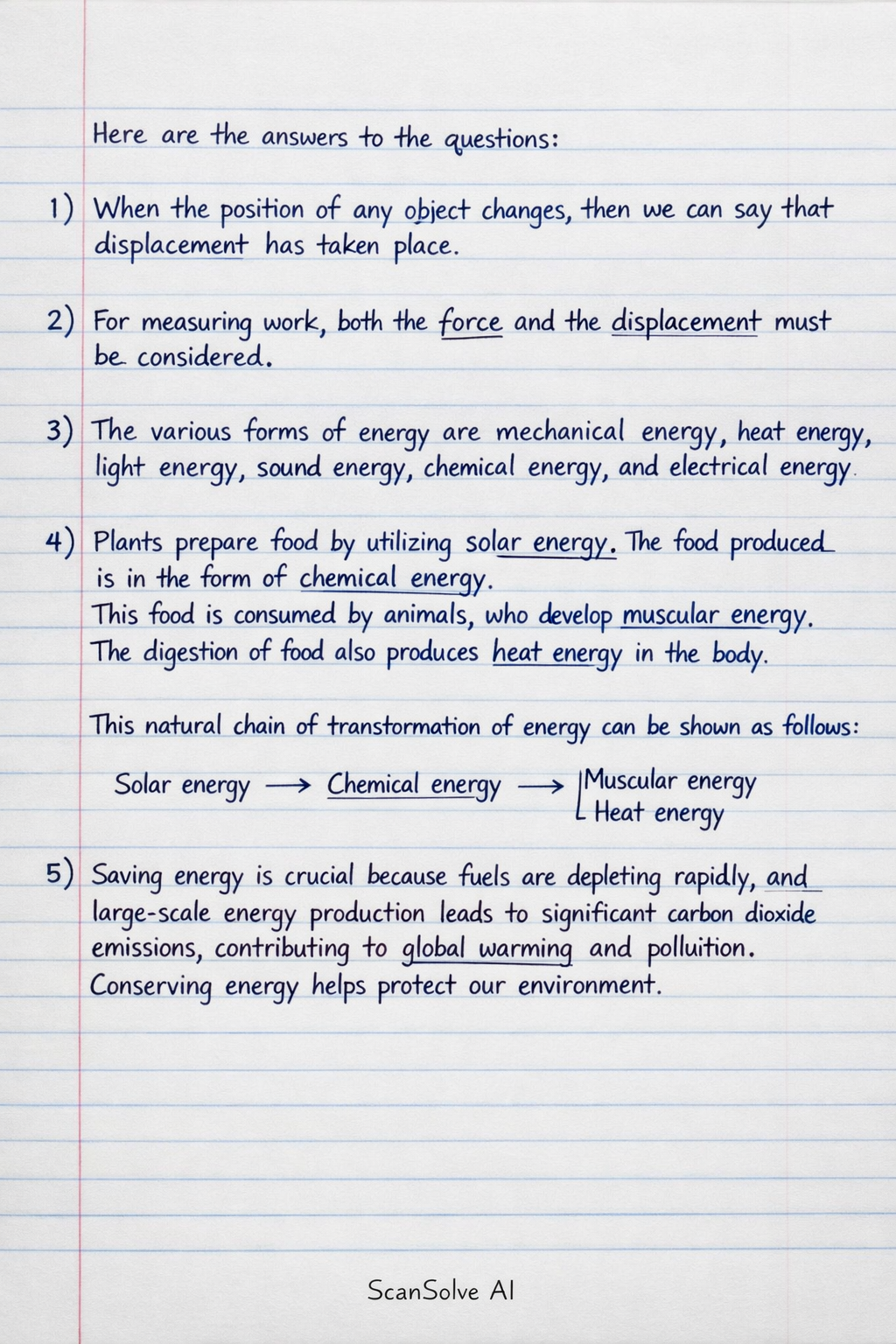 5) Saving energy is crucial because fuels are depleting rapidly, and large-scale energy production leads to significant carbon dioxide emissions, contributing to global warming and pollution. Conserving energy helps protect our environment.