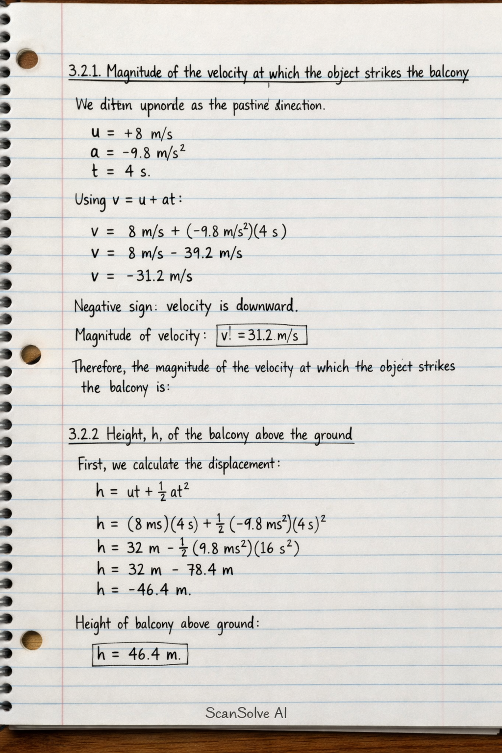 3.2.1 Magnitude of the velocity at which the object strikes the balcony
