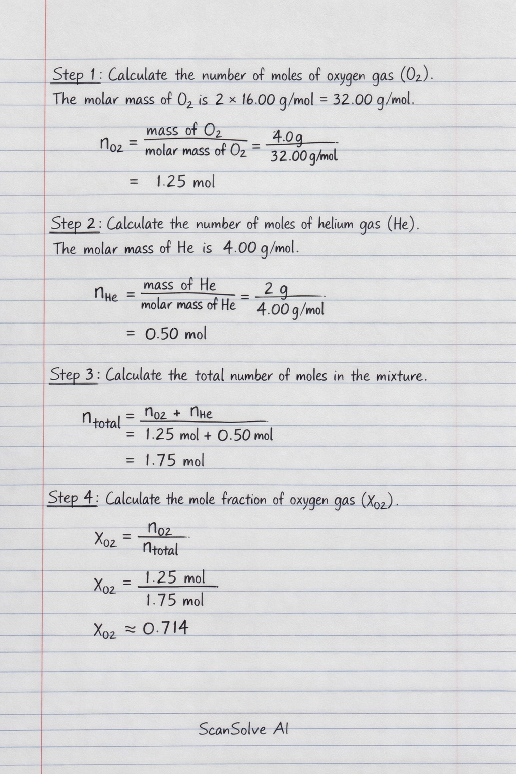 Step 4: Calculate the mole fraction of oxygen gas (χO2).