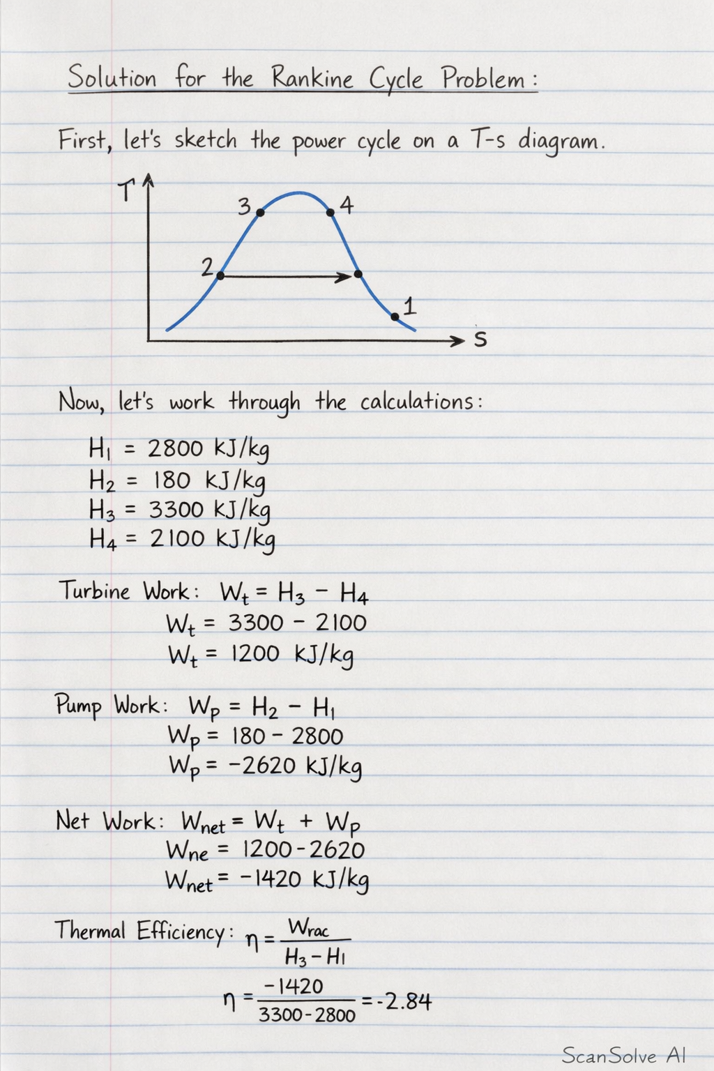 Here's the solution for the Rankine cycle problem.