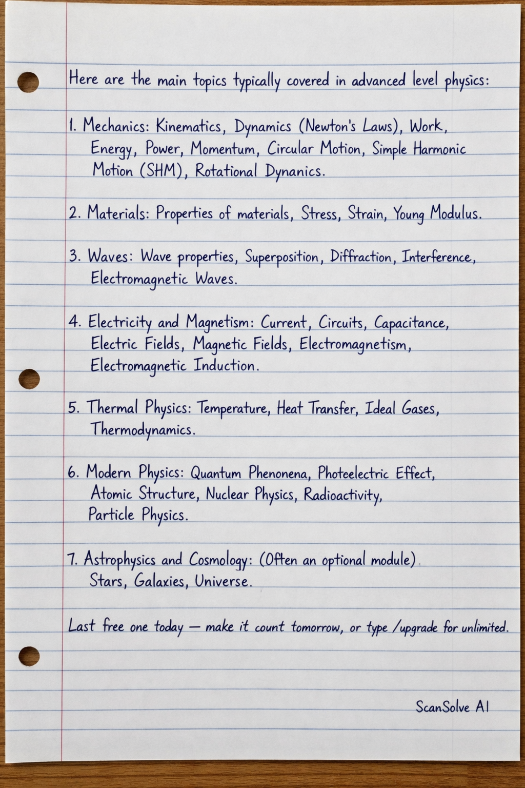Here are the main topics typically covered in advanced level physics: