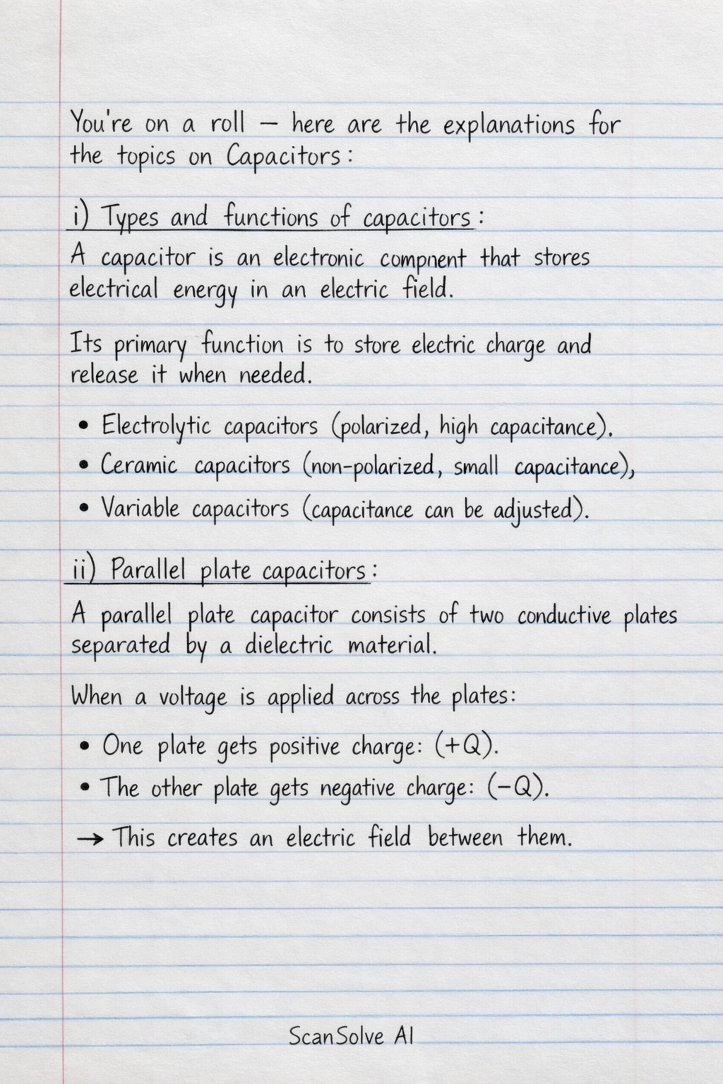 You're on a roll — here are the explanations for the topics on Capacitors: