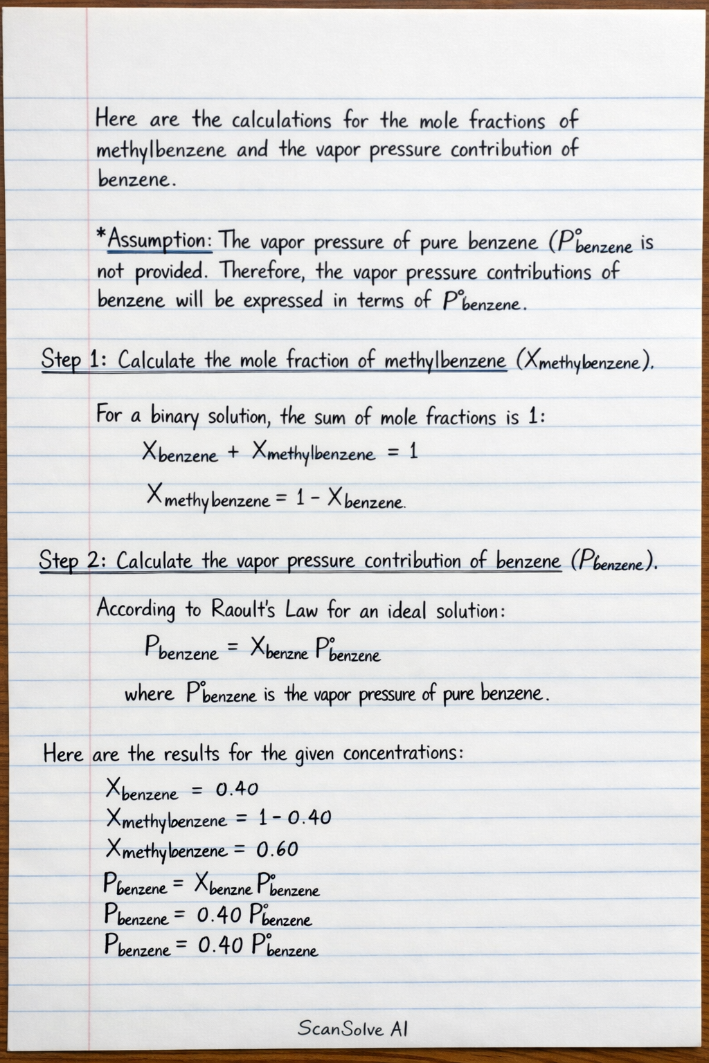 Step 1: Calculate the mole fraction of methylbenzene (Xmethylbenzene).