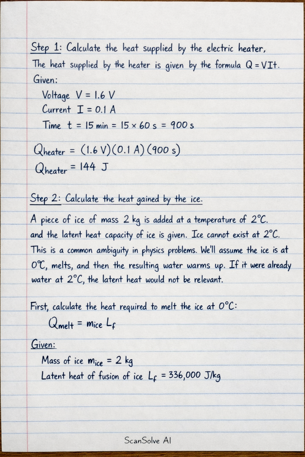 Step 2: Calculate the heat gained by the ice.