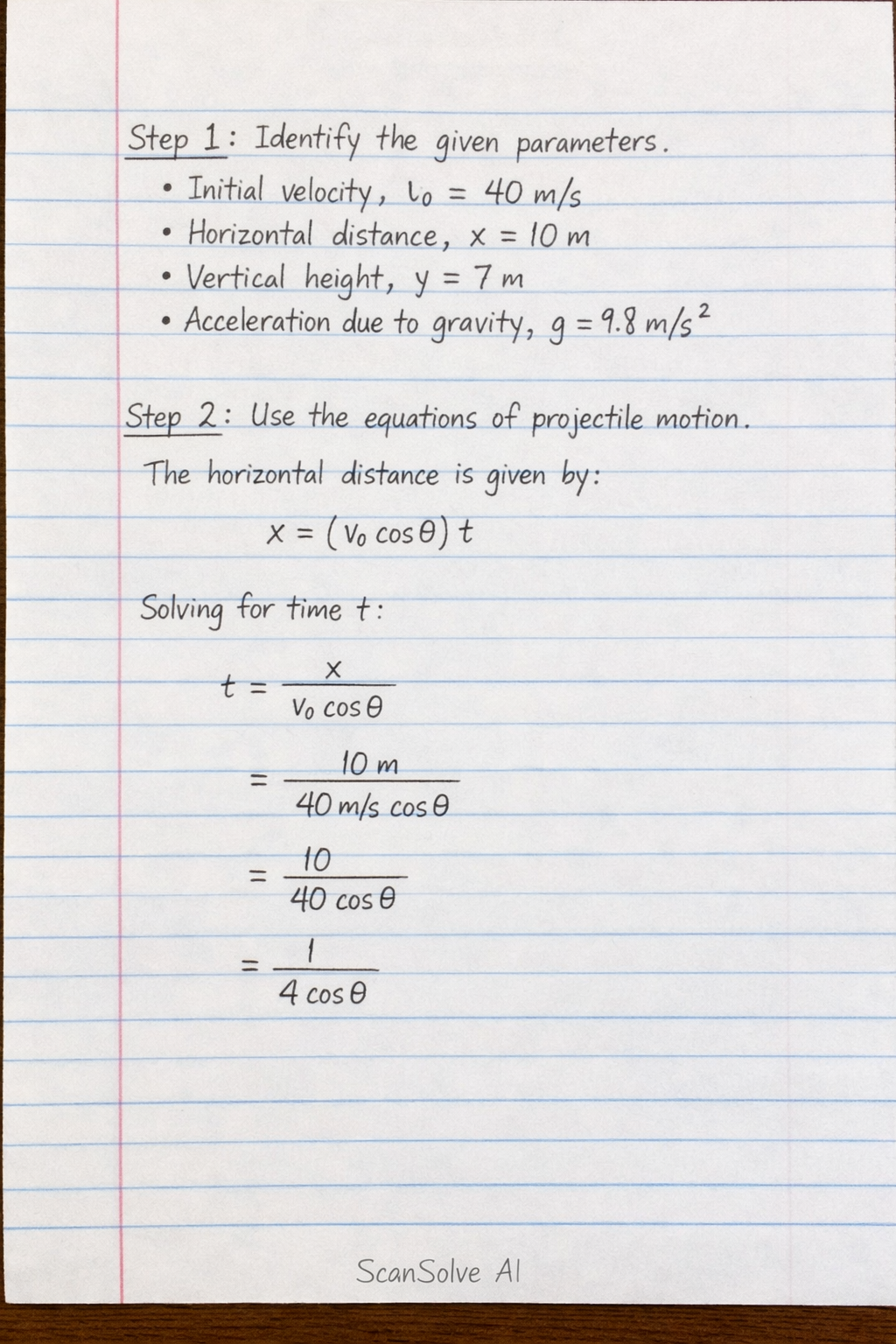 Step 2: Use the equations of projectile motion.
