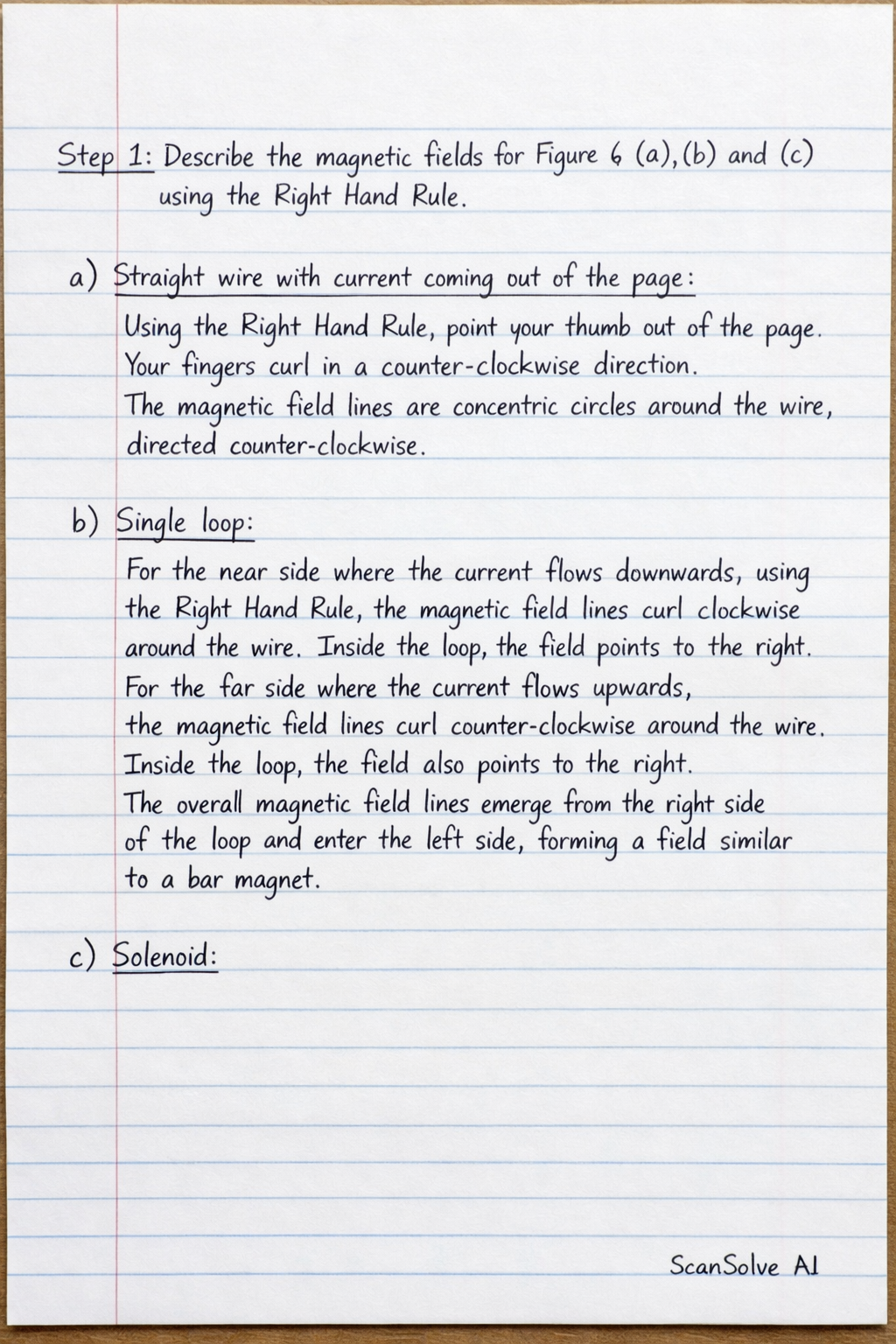 Step 1: Describe the magnetic fields for Figure 6 (a), (b), and (c) using the Right Hand Rule.