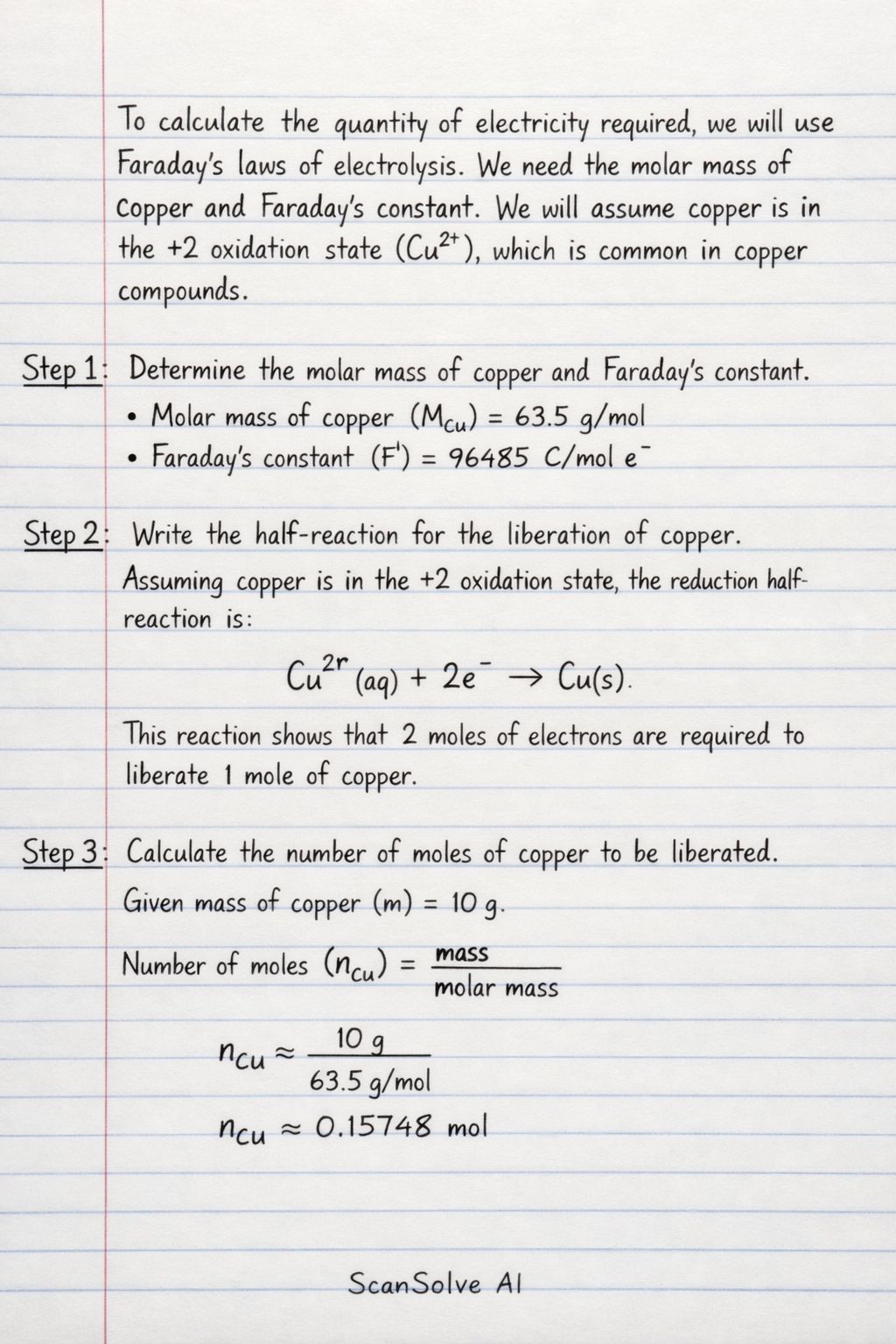 Step 3: Calculate the number of moles of copper to be liberated.