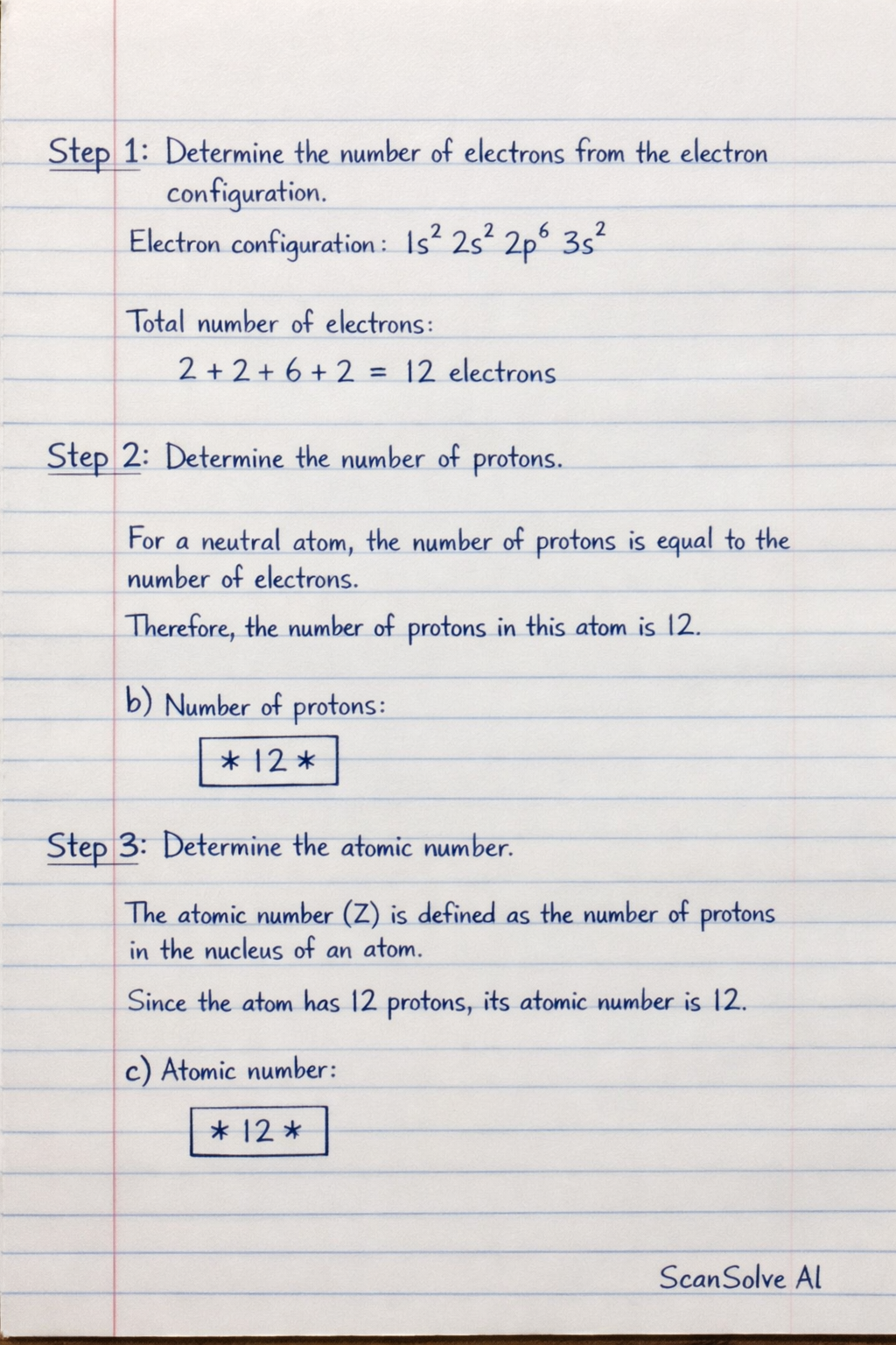 Since the atom has 12 protons, its atomic number is 12.