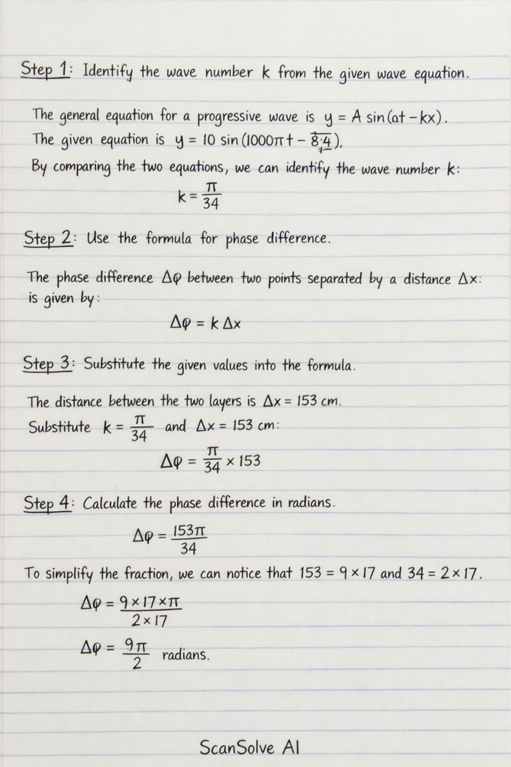 The phase difference Δϕ between two points separated by a distance Δx is given by: