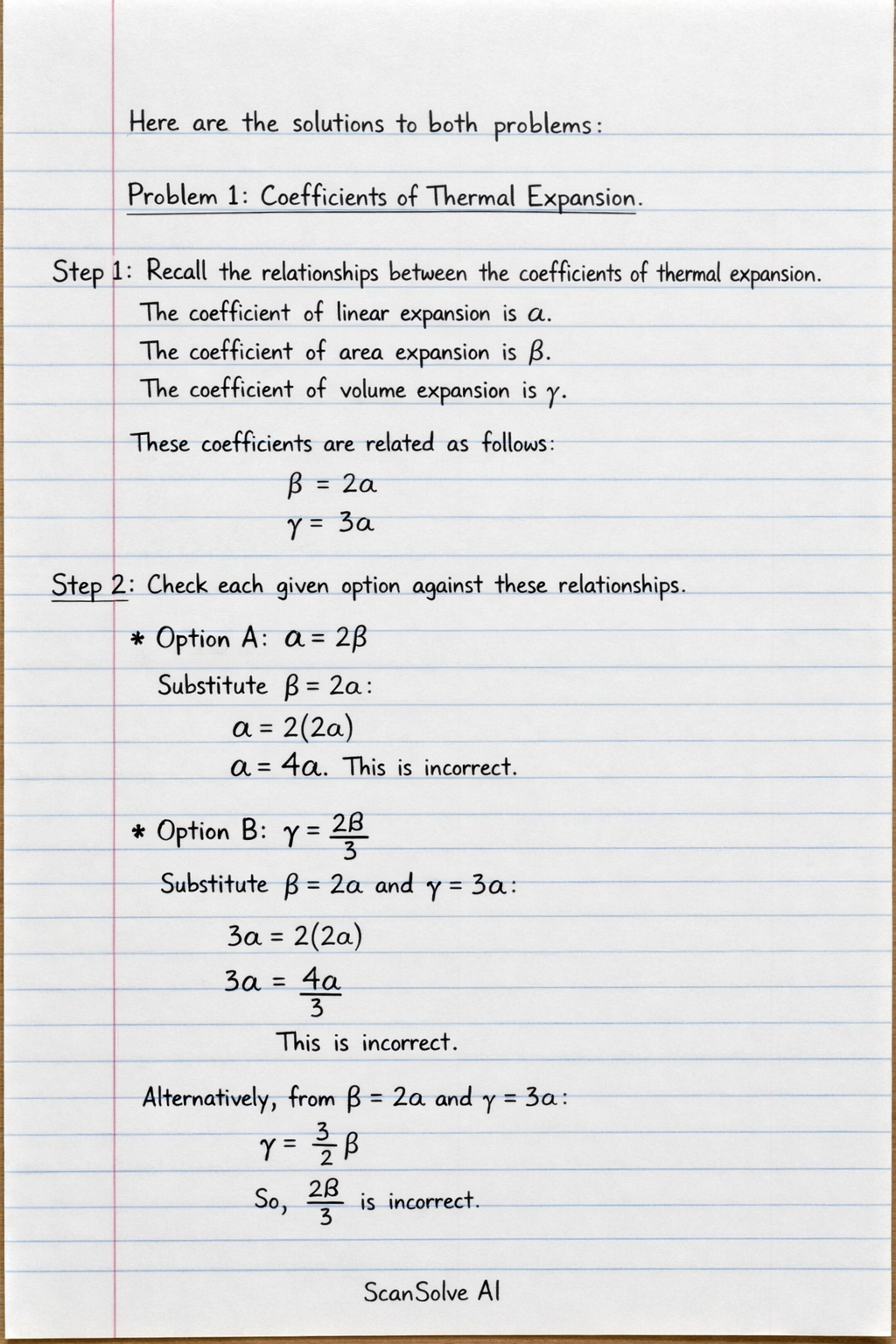 Step 1: Recall the relationships between the coefficients of thermal expansion.