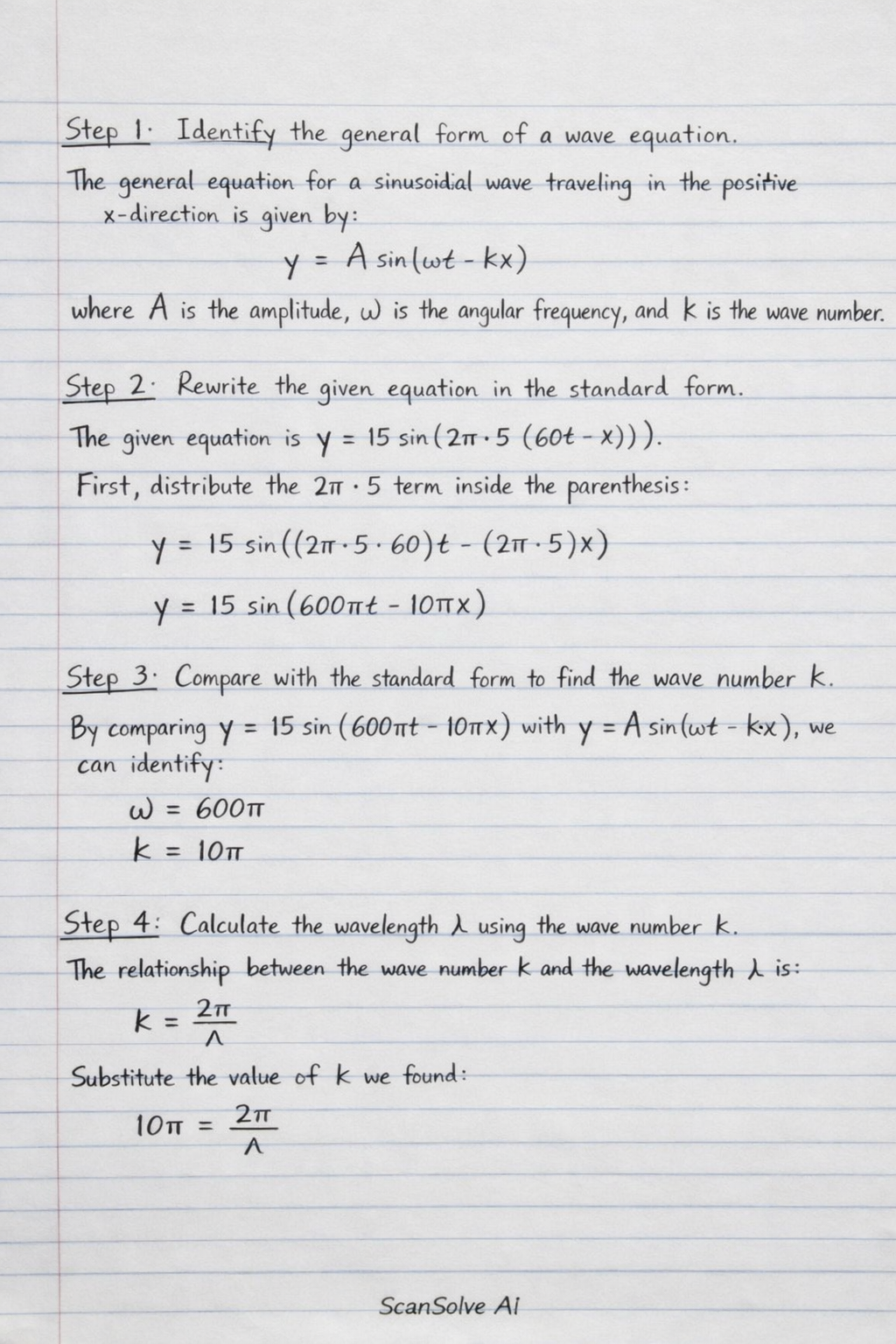 The given equation is y=15sin(2π⋅5(60t−x)).