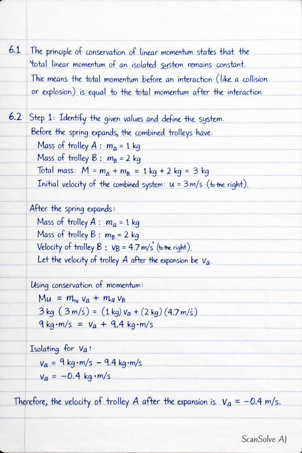 Velocity of trolley B: vB=4.7m⋅s−1 (to the right).