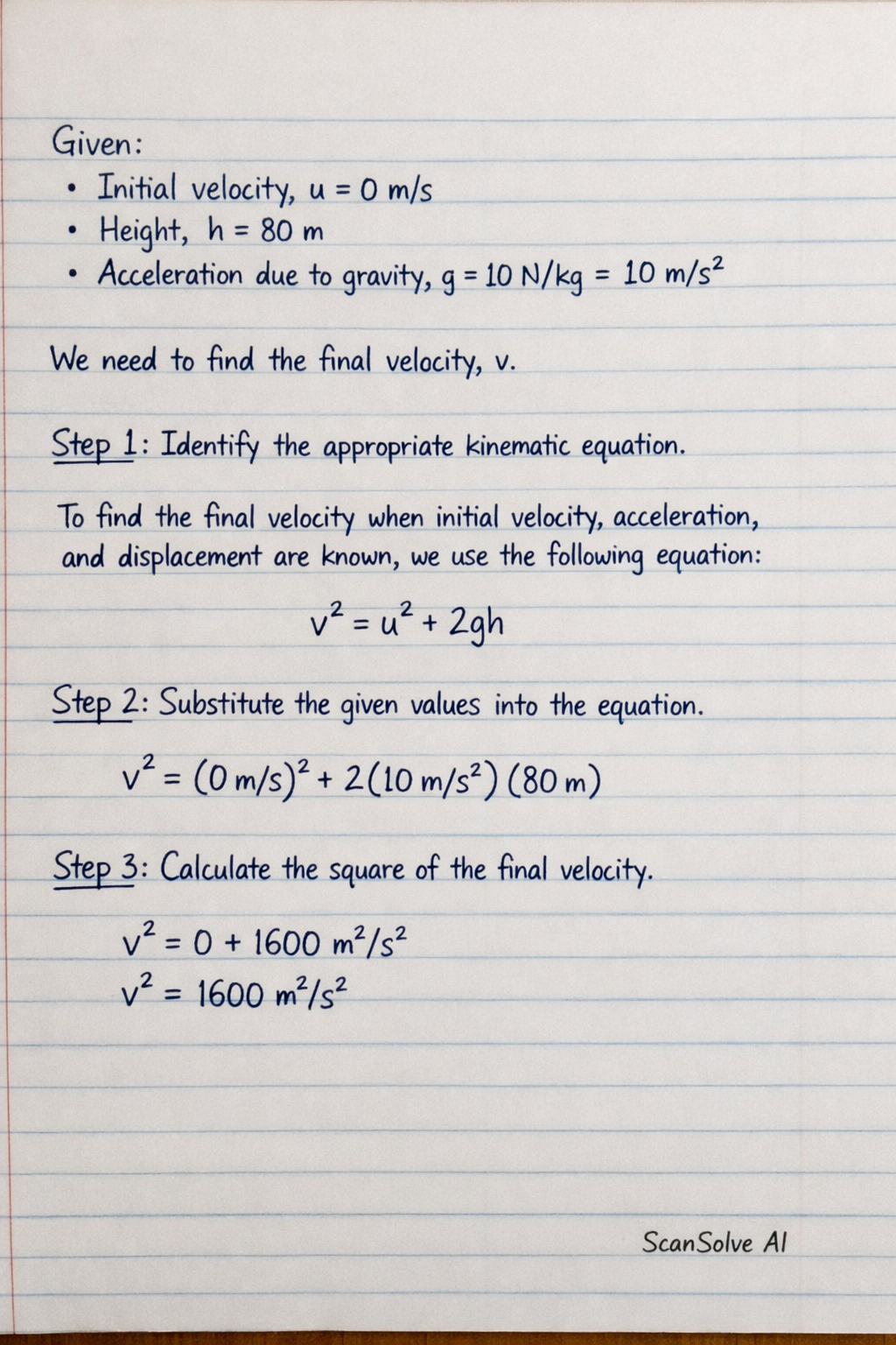 Step 3: Calculate the square of the final velocity.