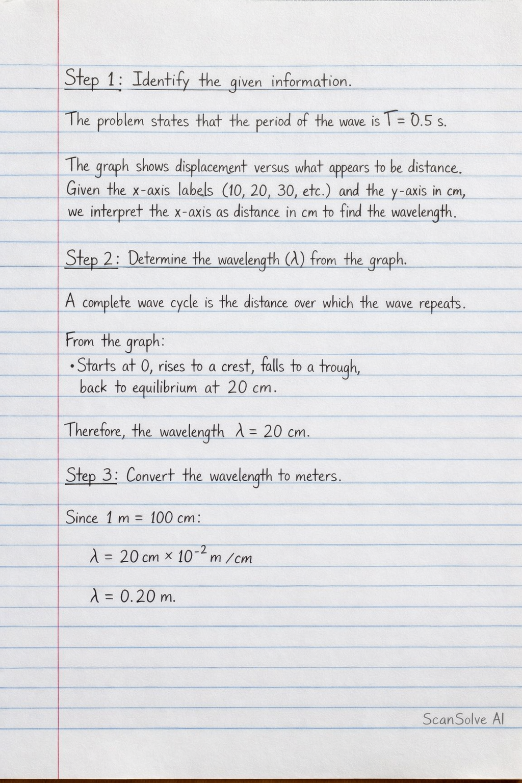 Step 2: Determine the wavelength (λ) from the graph.