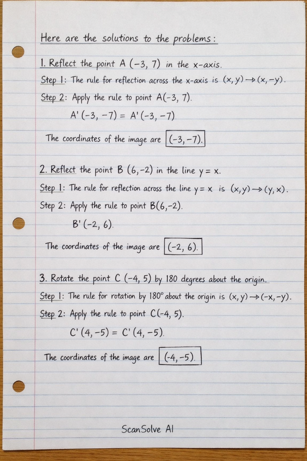 Step 1: The rule for reflection across the x-axis is (x,y)→(x,−y).