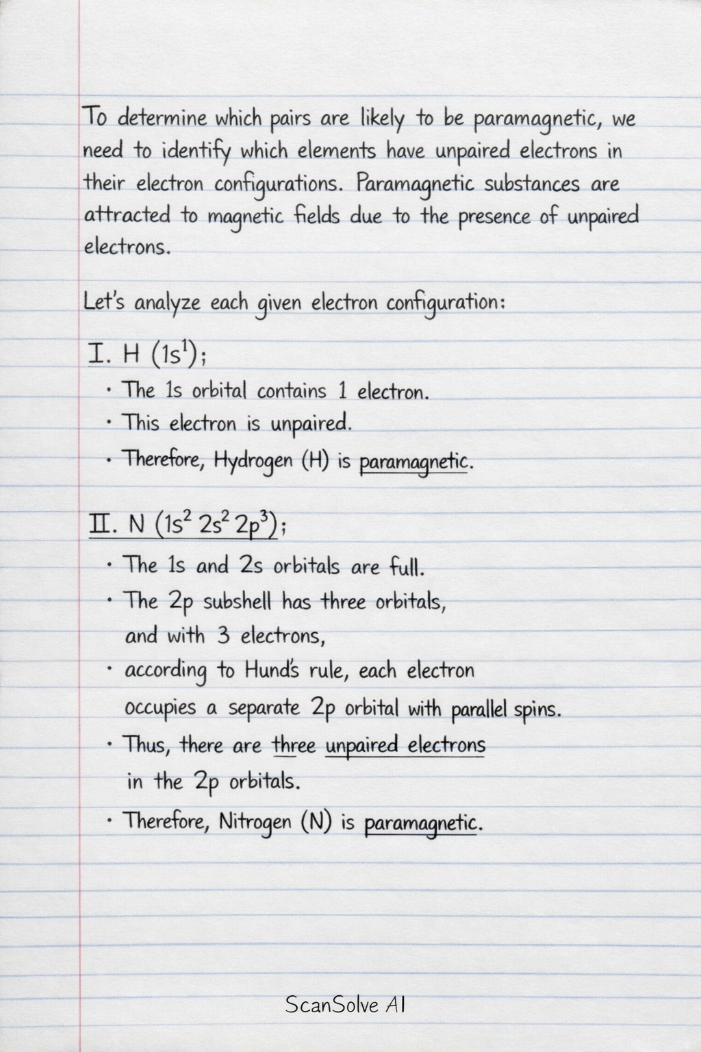 - Therefore, Nitrogen (N) is paramagnetic.