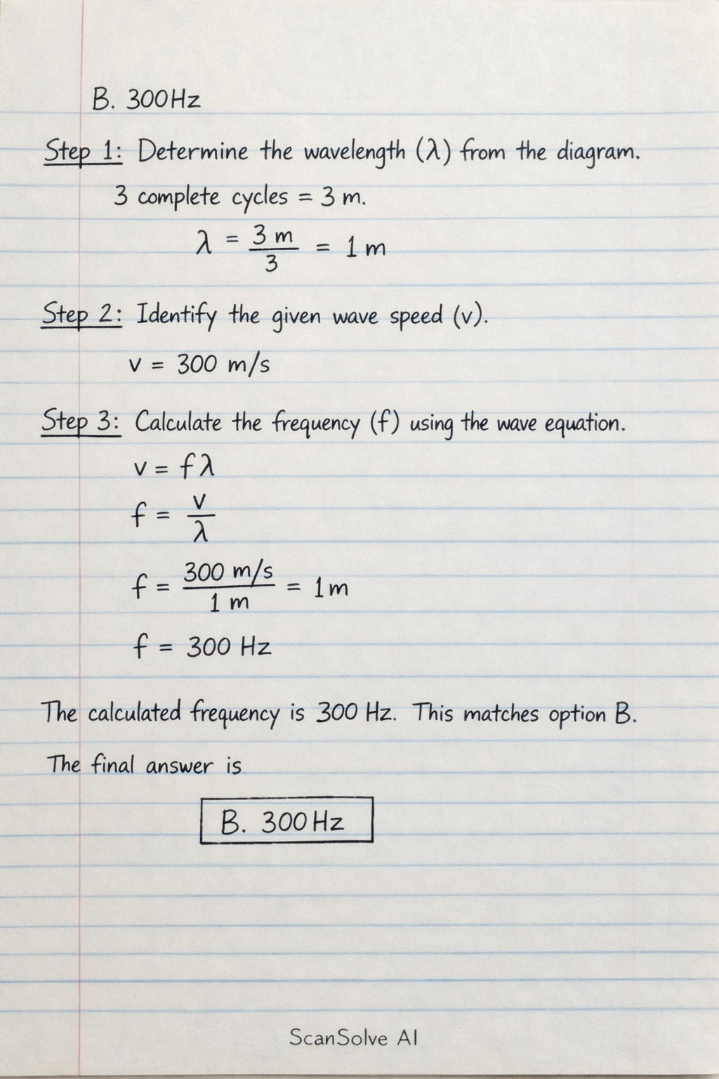 The diagram shows 3 complete cycles of the wave over a distance of 3m.