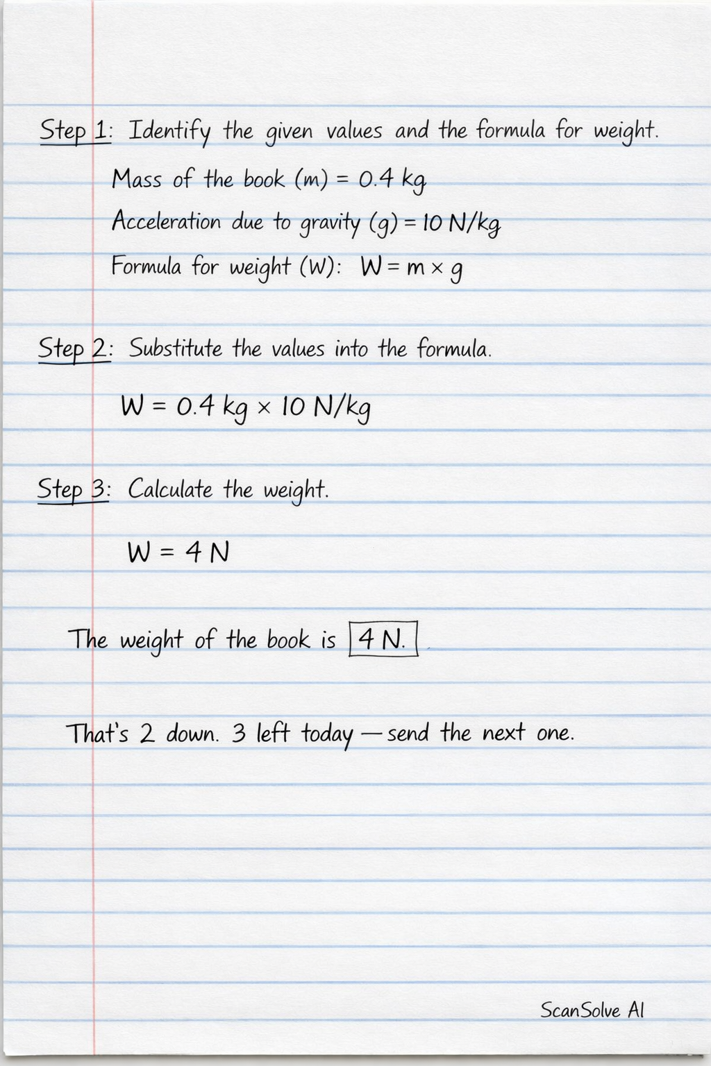 Calculate the weight of each of the following take gravity is equal to 10 neutrons per kilograms a (a book of mass 0.4 kg)