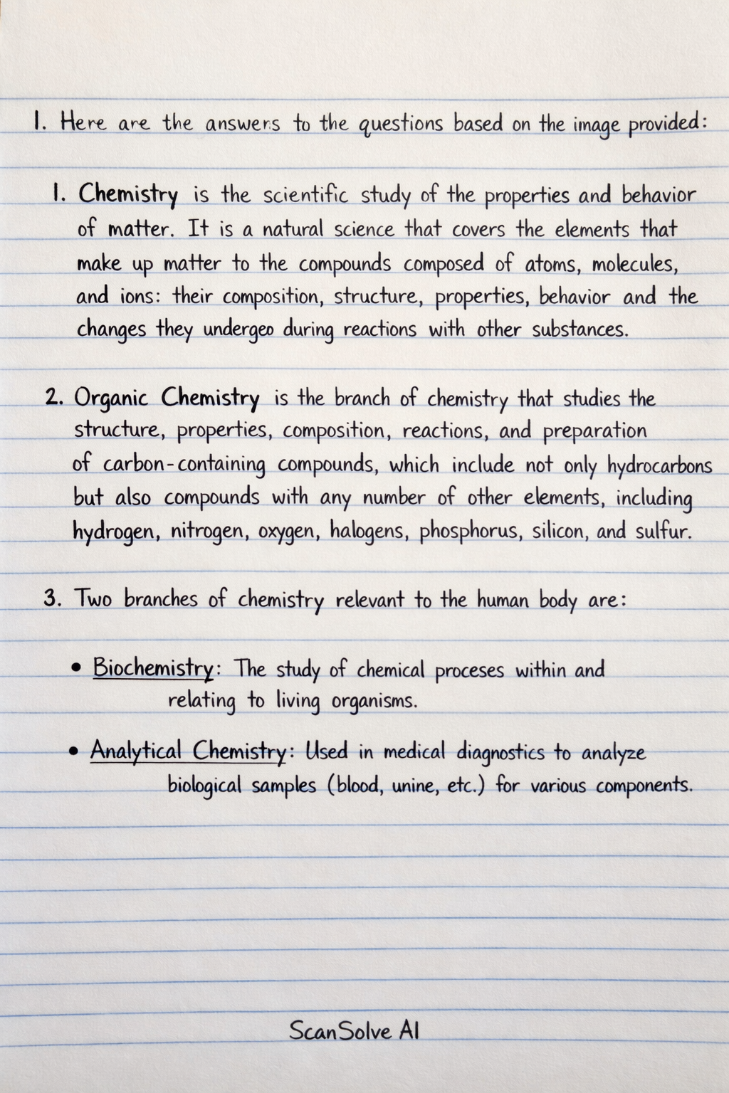 2. Organic Chemistry is the branch of chemistry that studies the structure, properties, composition, reactions, and preparation of carbon-containing compounds, which include not only hydrocarbons but also compounds with any number of other elements, including hydrogen, nitrogen, oxygen, halogens, phosphorus, silicon, and sulfur.