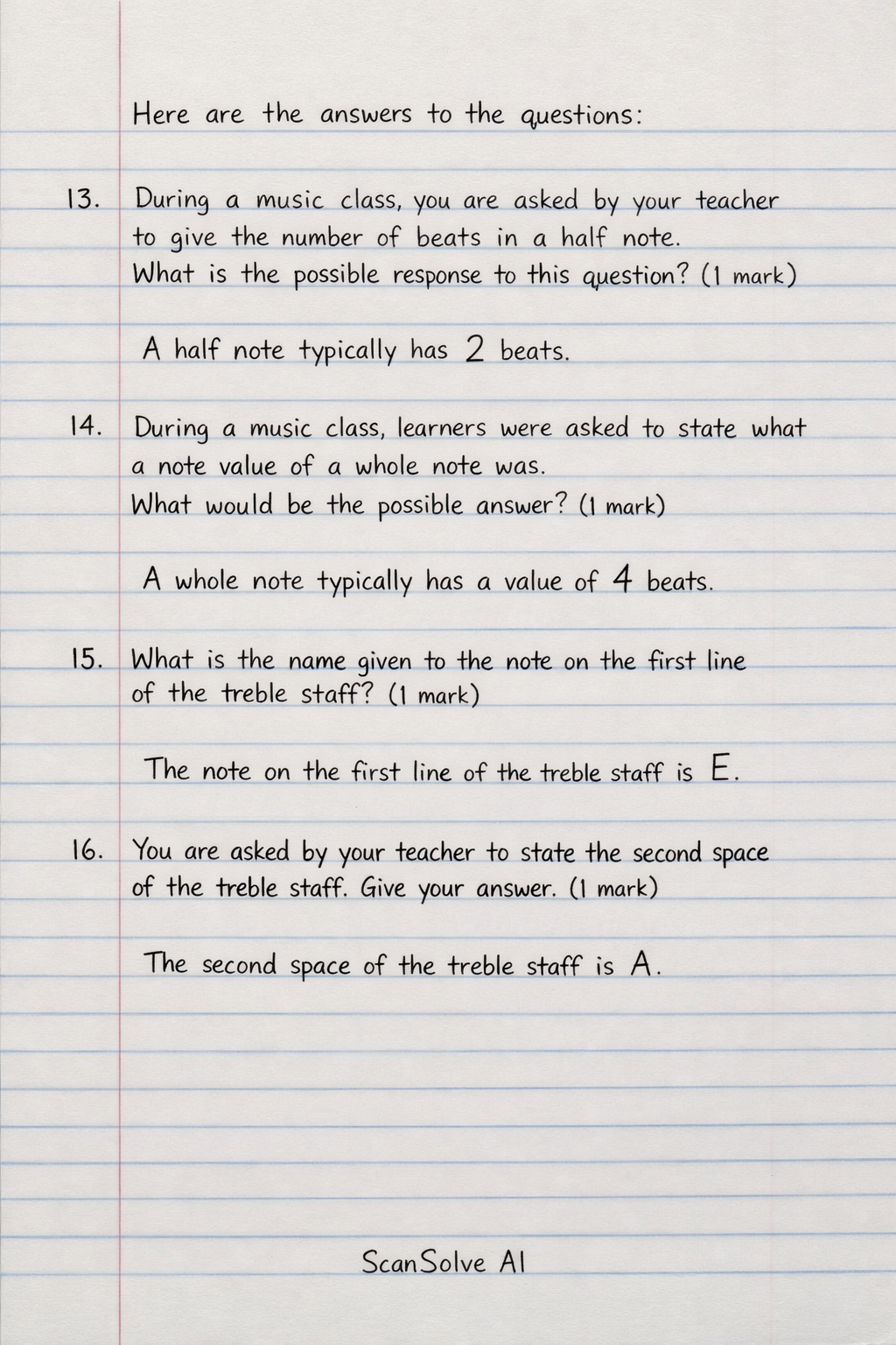 14. During a music class, learners were asked to state what a note value of a whole note was. What would be the possible answer? (1 mark)
