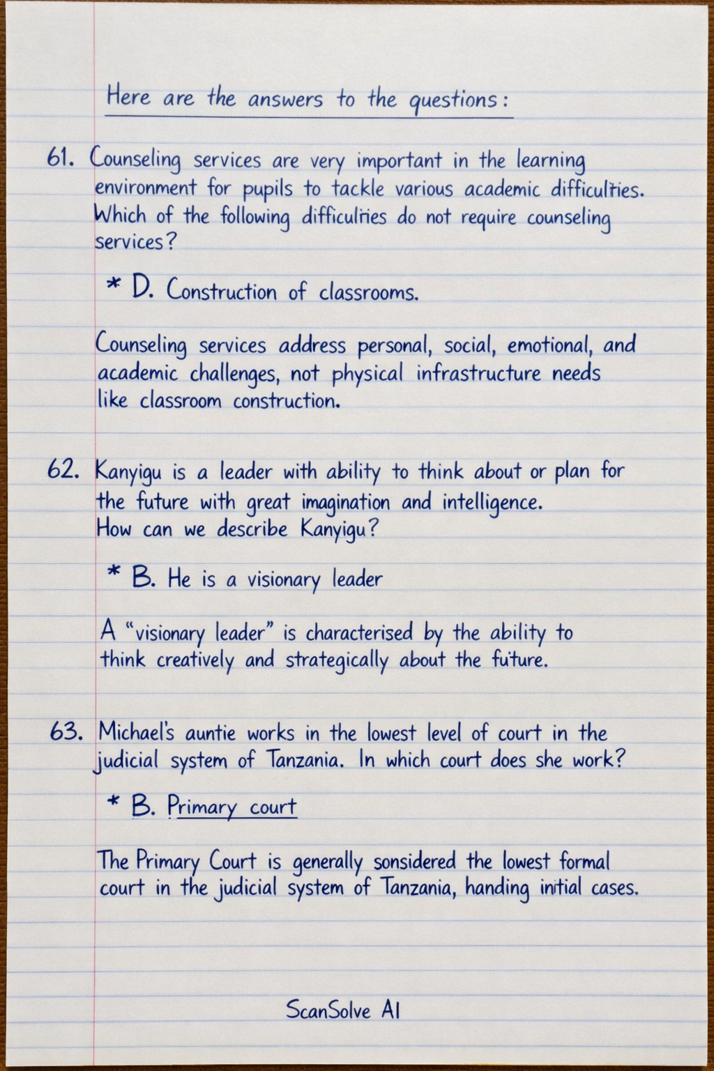 Michael's auntie works in the lowest level of court in the judicial system of Tanzania. In which court does she work?