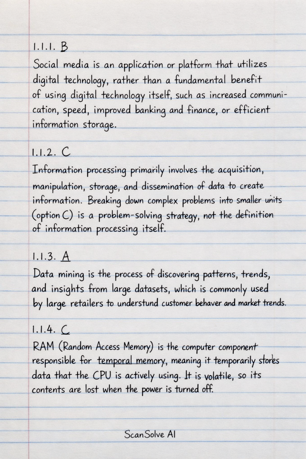 1.1.1. B Social media is an application or platform that utilizes digital technology, rather than a fundamental benefit of using digital technology itself, such as increased communication speed, improved banking and finance, or efficient information storage.